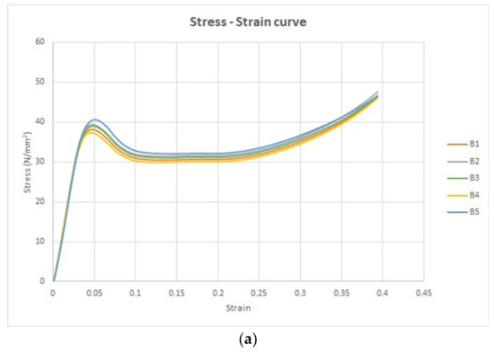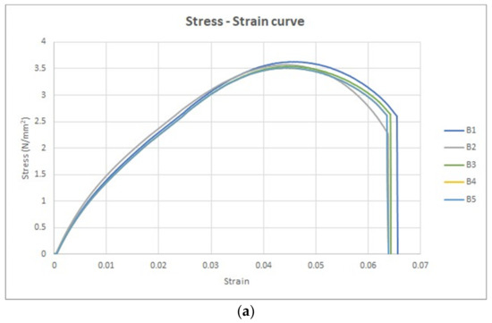 The recorded data underwent a thorough analysis, allowing for the determination of stresses in megapascals (MPa) and non-dimensional strains. This quantitative assessment was achieved through careful computations, enabling the derivation of vital mechanical characteristics, which are subsequently presented as follows: