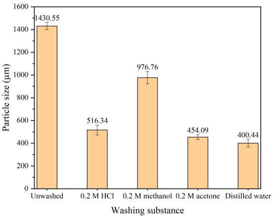 PANI was washed using different washing substances, such as 0.2 M HCl, 0.2 M acetone, 0.2 M methanol, and distilled water. The filtrates were analyzed via FTIR to confirm the presence of impurities and the washing efficiency. The particle size of PANI was also monitored and analyzed accordingly to investigate the effect of washing on particle size.