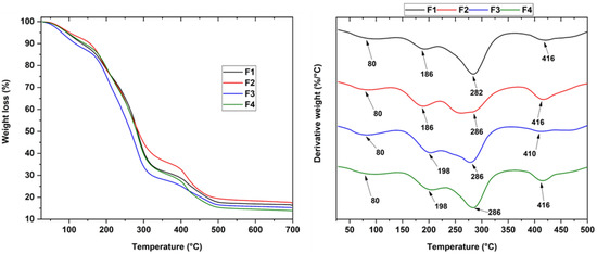 2.5.2. Thermal Analysis of the CS/PVA/CEO/GLY/n-BG Composites
