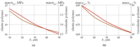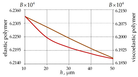 Within this study, the total coating thickness varies from 10 to 50 μm. The range includes the total thickness of the two-layer PC shown in Figure 1b and Table 1. The polymer-covered fiber is indented into the aluminum half-space with a constant force of 0.05 mN. The material behavior of the PC is considered in two statements: within the framework of elasticity theory; taking into account the viscosity of the polymer (thermoviscous elasticity).
