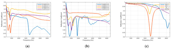Acoustical reflection coefficient: (a) FL43PS10 basic material; (b) FL60PS10 basic material; (c) reference materials.