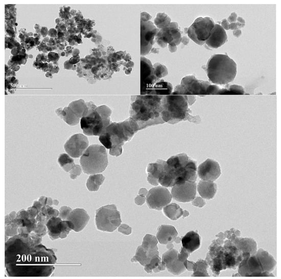 The samples were analyzed by scanning electron microscopy (SEM) and transmission electron microscopy (TEM). The SEM images were obtained on a microscope (Jeol, model JSM-6610, Tokyo, Japan). TEM images were acquired with a transmission electron microscope (Jeol, model JEM 2100, Tokyo, Japan) operating at 200 kV. The powder was dispersed in ethyl alcohol using an ultrasonic bath, followed by placing it on a copper grid. The SEM microscope was equipped with energy dispersive X-ray spectroscopy (EDX) from Thermo Scientific NSS Spectral Imaging.