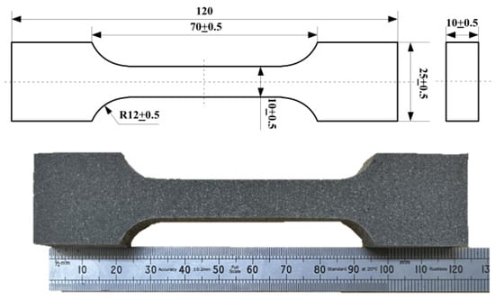 In this study, we collaborated with the manufacturer to obtain a batch of PFPC material specimens. The matrix materials consist of hydroxyl-terminated polybutadiene and toluene diisocyanate, with fillers comprising ammonium perchlorate particles. Additionally, a small quantity of aluminum (Al) was added to enhance the energy density. The styles and sizes of PFPC specimens are shown in Figure 1. To assess the impact of aging on the specimens, we conducted high-temperature-accelerated aging tests. The PFPC specimens were sealed in aluminum foil pouches and then placed in a curing constant temperature test chamber, model LC-101-0B (Shanghai Lichen Instrument Technology Co., LTD, Shanghai, China), to conduct the accelerated aging experiments under the conditions listed in Table 1 [].