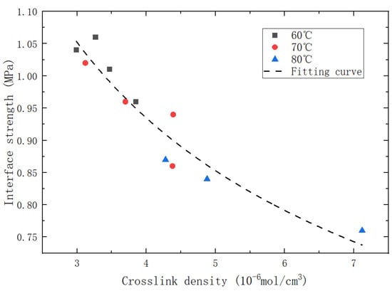 Diagram of crosslink density/interface strength fitting for the specimen.