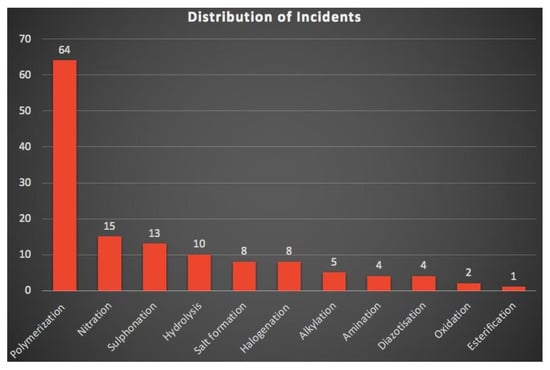 Distribution of incidents that occurred in eleven thermal runaway chemical processes [].
