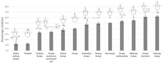 Inhibition efficiency of TEMPO and its analogues. Reprinted/adapted with permission from Ref. []. Copyright 2022, Springer Nature.