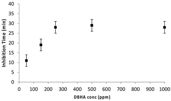 Plot of inhibition time versus DBHA concentration showing a non-linear relationship [].
