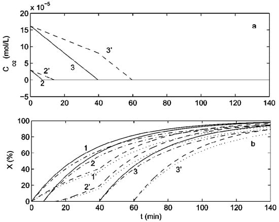 Comparison of (a) oxygen and (b) monomer conversion profiles in a batch and a semi-batch reactor at three oxygen levels. Curves 1, 2, and 3 represent oxygen free, 18% oxygen, and fully saturated with oxygen conditions in a batch reactor, respectively, while curves 1′, 2′, and 3′ indicate the same oxygen levels in a semi-batch reactor. The solid curves correspond to batch reactor, and the dashed curves correspond to the semi-batch reactor. Reprinted/adapted with permission from Ref. []. Copyright 2022, American Chemical Society.
