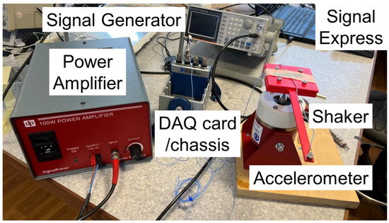 Figure 3 shows the experimental setup. The specimen was fixed on a V5 shaker (Data Physics). The signal generator (AFG21105) produced the specified voltage to the power amplifier. Then, the signal amplitude was adjusted and excited the shaker movement. An accelerometer (PCB 352A21) was fixed on the beam free end to record the time and acceleration. DAQ card and chassis transferred the measured data to a Signal Express 2015 in the laptop. The software saved the experimental data as .txt files for subsequent data processing.