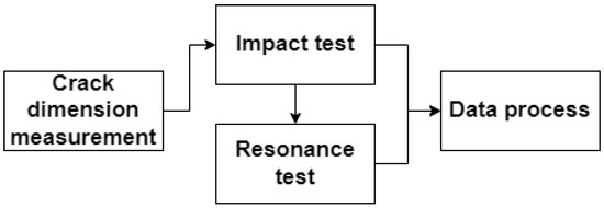 Crack angle and crack length were investigated in the research. There were five different crack angles and three different crack lengths, respectively. Therefore, there were 15 different combinations, as shown in Table 1. A 90° inclined angle represented a vertical crack. The minimum value of the angle range was set to 30° to ensure the artificial crack quality. The range of crack length was between 1 mm to 1.6 mm to obtain a stable dynamic response. Each test was repeated three times to ensure the reproducibility of the experiment.