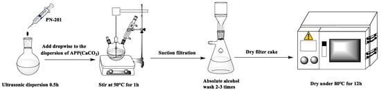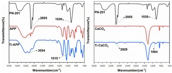 −1 showing a blue shift, which may be due to the shift of the absorption peak to the high wave number caused by the induction effect. The characteristic peak of PN-201 was detected in the modified APP and CaCO