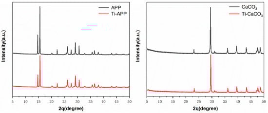 38]. Both APP and Ti-APP found their characteristic diffraction peaks at 16.7°, 15.5°, 20°, 22°, 26°, 27.6°, 29°, 30.6°, 35.7°, 36.5°, 38° [