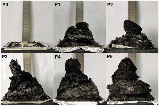 Composites with IFR generate large amounts of gas during combustion due to the presence of blowing agents. If the carbon layer has good compactness and high strength, it is difficult for all the gases to break through and will inevitably expand. Therefore, the expansion height of the residual carbon can often preliminarily judge the strength and compactness of the carbon layer, as well as the flame-retardant performance [