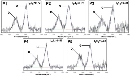 3, whether modified or not, can improve the degree of graphitization of the carbon layer. Especially, P4 has the highest degree of graphitization with the smallest I