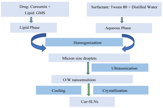 Schematic representation for the preparation of curcumin loaded solid lipid nanoparticles (Cur-SLNs).