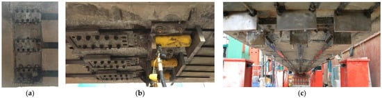 Prestressed concrete hollow-plate bridges are commonly constructed in highway and railway engineering with the advantage, including relatively lightened self-weight, of fast construction using cast-in-situ concrete with assembling of precast members [1,2,3]. In the service progress of a bridge, several reasons, including the environment effect, inadequate maintenance, and excessive vehicle load, will lead to the performance degradation of bridge structure in bearing capacity and durability [3,4,5]. To ensure traffic flow and ease the pressure on reconstruction funds, the worsened bridges are usually strengthened instead of rebuilt [6,7,8].