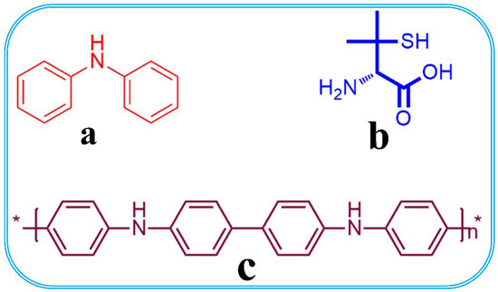 Chemical structure of (a) N,N-Diphenylamine; (b) D-Penicillamine; and (c) Poly(diphenylamine).