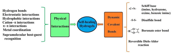 - Devi VK, A.; Shyam, R.; Palaniappan, A.; Jaiswal, A.K.; Oh, T.-H.; Nathanael, A.J. Self-Healing Hydrogels: Preparation, Mechanism and Advancement in Biomedical Applications. Polymers 2021, 13, 3782. [Google Scholar] [CrossRef] [PubMed]