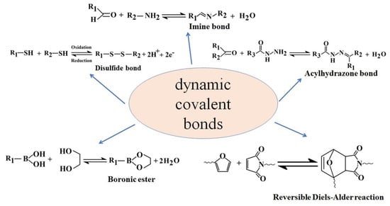 - Chakma, P.; Konkolewicz, D. Dynamic Covalent Bonds in Polymeric Materials. Angew. Chem. Int. Ed. 2019, 58, 9682–9695. [Google Scholar] [CrossRef]