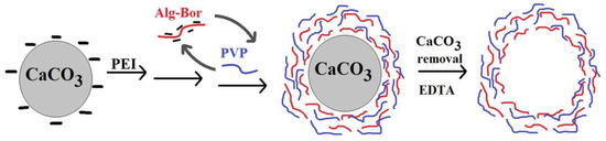- Belbekhouche, S.; Charaabi, S.; Carbonnier, B. Glucose-Sensitive Capsules Based on Hydrogen-Bonded (Polyvinylpyrrolidone/Phenylboronic—Modified Alginate) System. Colloids Surf. B Biointerfaces 2019, 177, 416–424. [Google Scholar] [CrossRef]