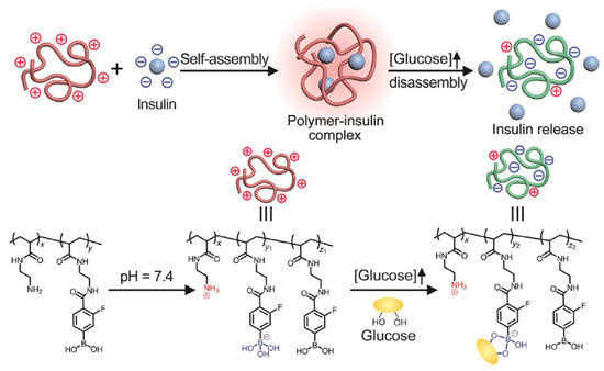 - Chai, Z.; Ma, L.; Wang, Y.; Ren, X. Phenylboronic Acid as a Glucose-Responsive Trigger to Tune the Insulin Release of Glycopolymer Nanoparticles. J. Biomater. Sci. Polym. Ed. 2016, 27, 599–610. [Google Scholar] [CrossRef] [PubMed]