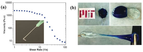 - Uman, S.; Dhand, A.; Burdick, J.A. Recent Advances in Shear-Thinning and Self-Healing Hydrogels for Biomedical Applications. J. Appl. Polym. Sci. 2020, 137, 48668. [Google Scholar] [CrossRef]