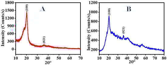XRD charts of PVHF (A) and PVHF-40 (B) membranes.