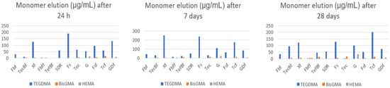 - Schulz, S.D.; Laquai, T.; Kümmerer, K.; Bolek, R.; Mersch-Sundermann, V.; Polydorou, O. Elution of Monomers from Provisional Composite Materials. Int. J. Polym. Sci. 2015, 2015, 617407. [Google Scholar] [CrossRef]