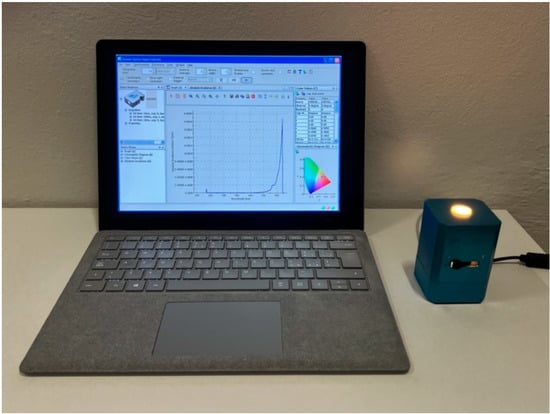 A spectrophotometer (Ocean Optics PSD1000, Orlando, FL, USA) equipped with a 10.0 mm opening integrating sphere (Ocean Optics ISP-REF, Orlando, FL, USA) was used for color analysis. The spectrophotometer was connected to a computer running color measurement software (OOILab 1.0, Ocean Optics, Orlando, FL, USA) (Figure 2).