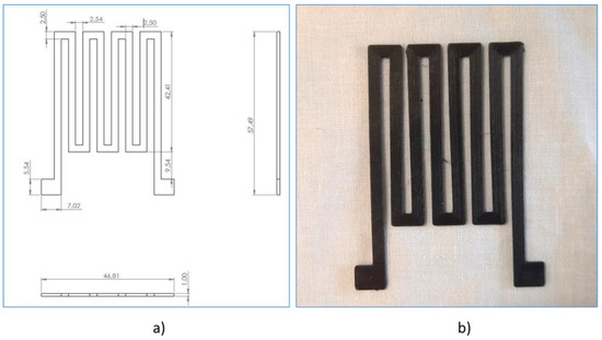 Finally, a heater in coil format was printed on a COR22 fabric with the dimensions shown in Figure 7. A thermal study of the heater in operation was carried out using an 875 thermal camera (Testo SE & Co. KGaA, Lenzkirch, Germany).