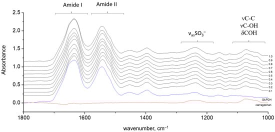 - Belton, P.S.; Goodfellow, B.J.; Wilson, R.H. A variable-temperature Fourier-transform infrared study of gelation in ι- and κ-carrageenans. Macromolecules 1989, 22, 1636–1642. [Google Scholar] [CrossRef]
