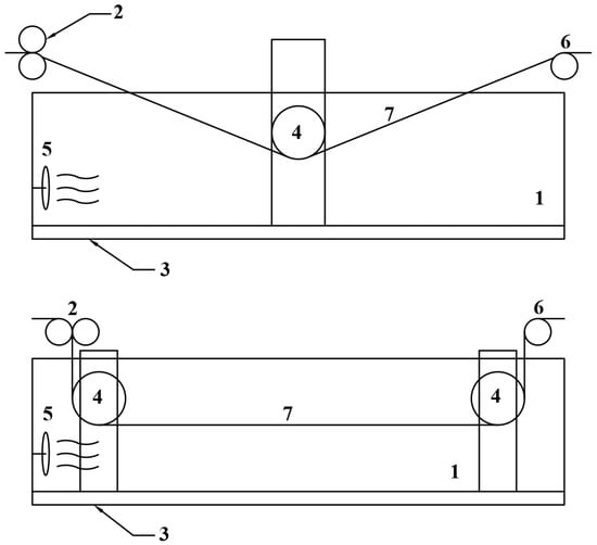 The paper was processed by passing the substrate through the molten solvent; the schematic diagram of the device is presented in Figure 1.