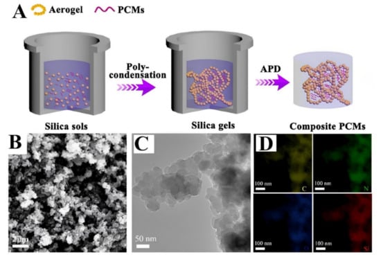 - Liu, P.; Gao, H.; Chen, X.; Chen, D.; Lv, J.; Han, M.; Cheng, P.; Wang, G. In situ one-step construction of monolithic silica aerogel-based composite phase change materials for thermal protection. Compos. Part B Eng. 2020, 195, 108072. [Google Scholar] [CrossRef]