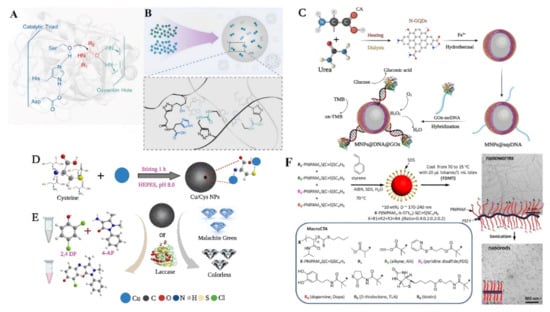 - Tang, Q.; Li, Y.; Liu, W.; Li, B.; Jin, Y. One-step synthesis of biomimetic copper–cysteine nanoparticle with excellent laccase-like activity. J. Mater. Sci. 2022, 1–12. [Google Scholar] [CrossRef]