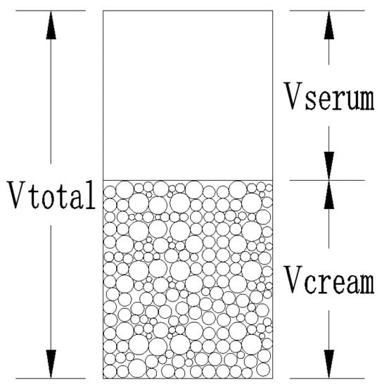Schematic representation of EI. Vserum: volume of clear liquid after homogenization; Vcream: volume of the emulsified layer after homogenization; Vtotal: volume of total emulsion.