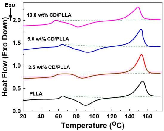 DSC thermograms of PLLA and CD/PLLA nanofibers.