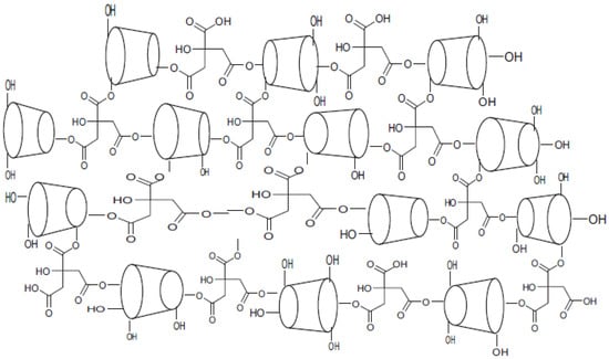 Insoluble cyclodextrin polymers is a non-conventional adsorbent, it can be obtained using cyclodextrin (CD) as complex molecule and bi or polyfunctional substance as cross-linking agent [], this adsorbent is very used in dyes removal from wastewater with best results [,,,,].
