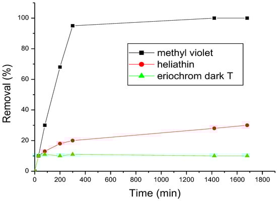 - Bonettoa, L.; Ferrarinia, F.; de Marcoa, C.; Crespoa, J.; Guéganb, R.; Giovanela, M. Removal of methyl violet 2B dye from aqueous solution using amagnetic composite as an adsorbent. J. Water Process. Eng. 2015, 6, 11–20. [Google Scholar] [CrossRef]