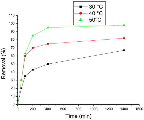 Temperature has an important effect on methyl violet adsorption onto ß-cyclodextrin polymer, results are shown in Figure 8, adsorption kinetic is improved with increasing of temperature, this effect may be attributed to increasing of the intraparticle diffusion rate or to enlargement of pore size [,,,,,,,,].