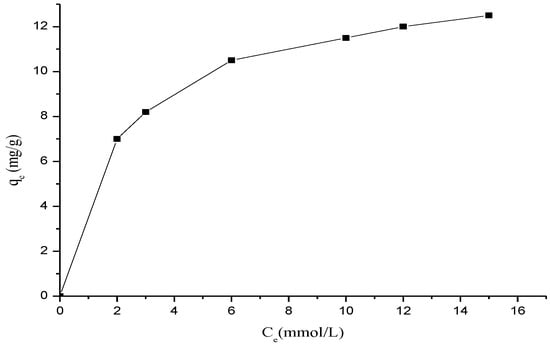 Figure 8 shows adsorption isotherm for ß-cyclodextrin polymer using methyl violet, the equilibrium adsorption capacity (qe), increased with increase in dye concentration. The shape of the isotherm indicated an L-behavior according to Giles et al. [] classification, which confirms a high affinity between the β-cyclodextrin polymer and the dye molecule [].