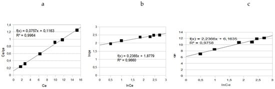 The linear form of the Langumir isotherm is given by the Equation (2):