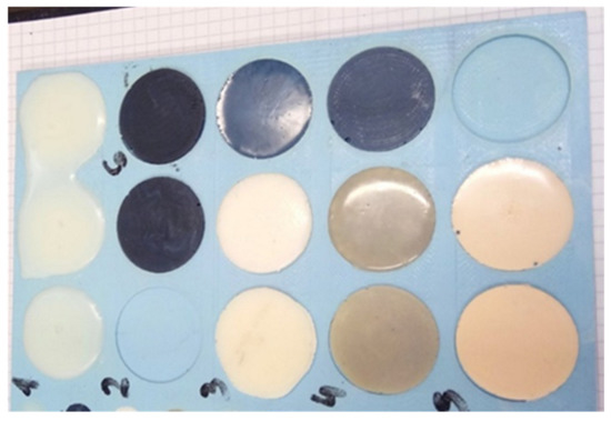 In order to make the cast polymeric samples, molds were made of molding silicone, the important advantage of which is its very weak adhesion to polymers, making it easy to remove the samples from the mold. Specimen molds were prepared for compression testing, for the determination of the density of the examined polymeric materials and for the determination of the thermophysical properties of the modified polymers.