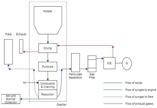 - Reed, T.B.; Das, A. Handbook of Biomass Downdraft Gasifier Engine Systems; Biomass Energy Foundation: Golden, CO, USA, 1988. [Google Scholar] [CrossRef]
