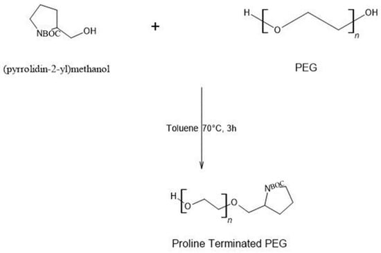 In addition, one can add the functional groups of seven structure-breaking amino acid residues to PEG for creating a second set of new polymers. Scheme 6 represents the reaction mechanism between proline’s functional group and PEG as an illustrative example.