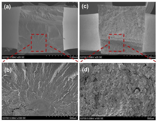 The structure of injection-moulded polyamide: (a) 25× and (b) 100×; injection-moulded SFRN: (c) 25× and (d) 100×.