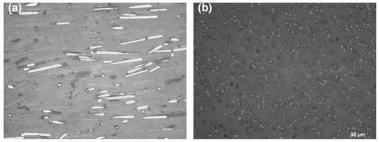 The measured fibre volume fraction of fabricated SFRN is about 9%. The length and the diameter of short fibre are 140 ± 10 µm and 7 ± 0.5 µm based on the microscope images of fibres shown in Figure 8. The values for printed SFRN and injection SFRN are taken as 0.56 and 0.80 based on the literature [69,73], respectively. The tensile modulus of carbon fibre is 230 GPa [74] and the tensile modulus of polyamide is 1.4 GPa due to the tensile result of the injection-moulded polyamide. The Poisson’s ratio of polyamide is assumed to be 0.39 as suggested in the literature [75].