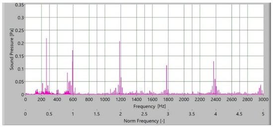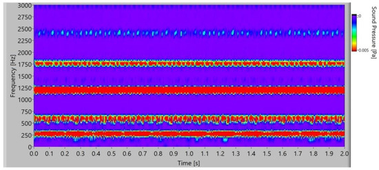 In the case of the time–frequency analysis, the measured signal was 2 s long, the frequency sampling was 65,536 samples/s, and the window length was 80 ms. The measured sound signal was processed with Hanning windows and analysed with fast frequency transformation without filters.