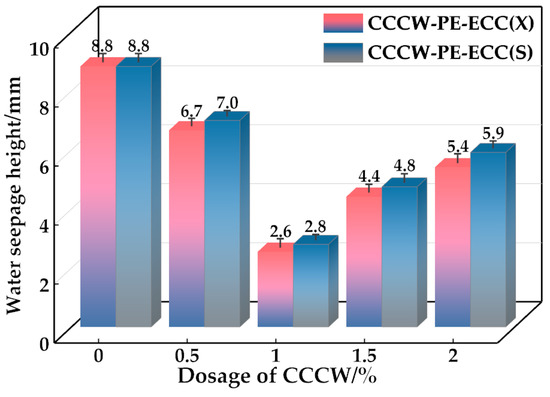 Water seepage height of CCCW-PE-ECC(X) and CCCW-PE-ECC(S).