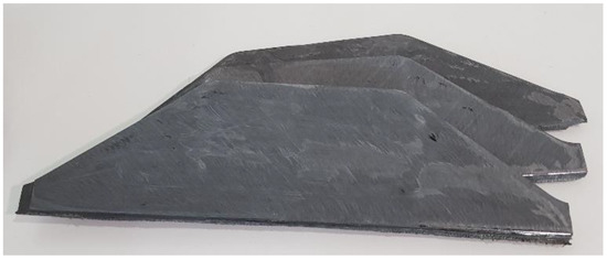 The mechanical properties of these carbon fiber panels were obtained from the STRATA company. The composite’s tensile, flexural, and Interlaminar Shear Strength were 601.8 MPa, 45.4 MPa, and 73.8 MPa, respectively. Since the cured prepregs were in the form of panels varying in size, as shown in Figure 2, a mechanical size reduction process needed to be undertaken before incorporation into the samples was to be completed.