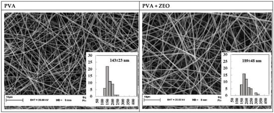 SEM image of PVA and PVA/ZMEO nanofibers, (mean ± SD).